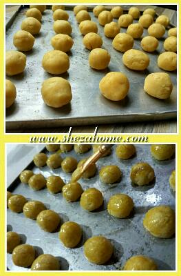 Dibentuk bulat dan diberi isi selai nanas, lakukan sampai bahan adonan habis.